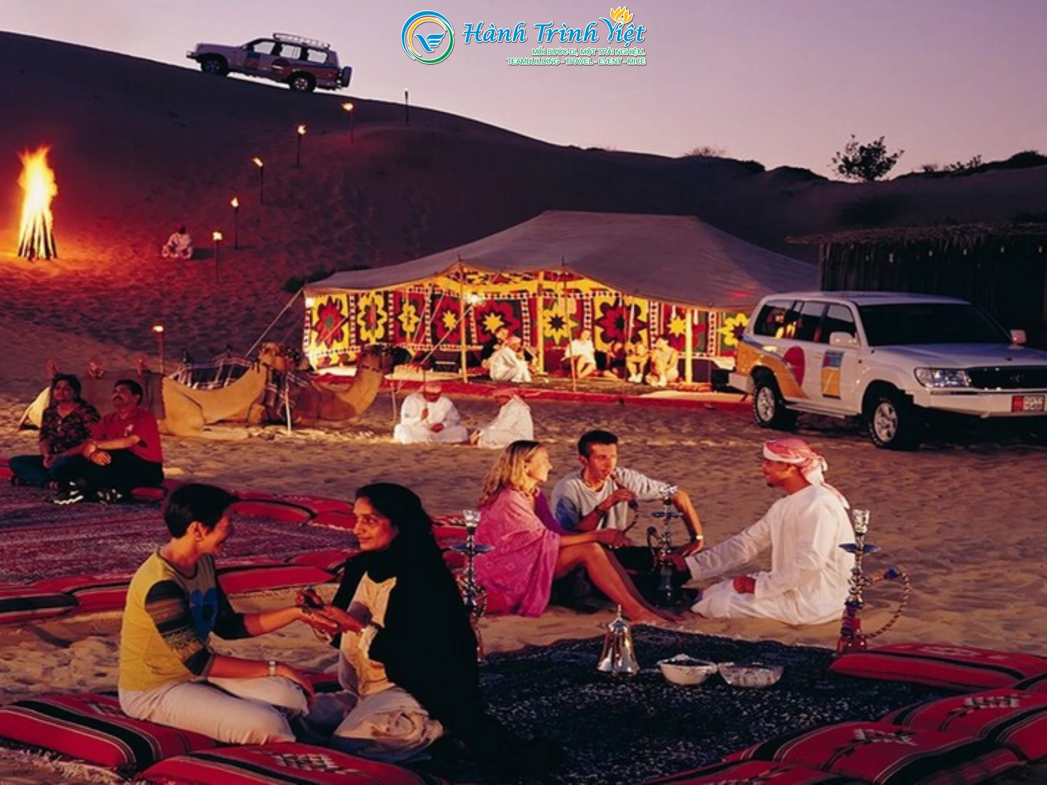 - Quý khách sẽ được chào đón một cách nồng ấm bởi người dân nơi đây, thưởng thức những tách cafe Ả Rập, hút thử shisha, … và đặc biệt là một bữa tiệc buffet BBQ kiểu Ả Rập cùng với các vũ công belly dance cực kỳ quyến rũ (*).