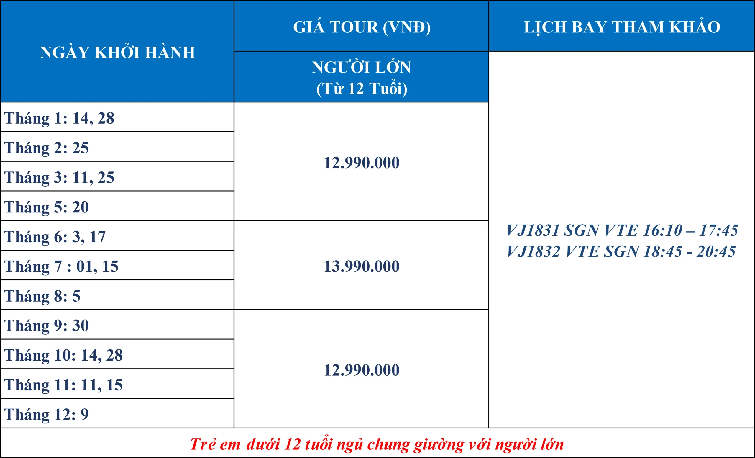 ❖ Từ 11 trở lên: giá tour bằng người lớn.