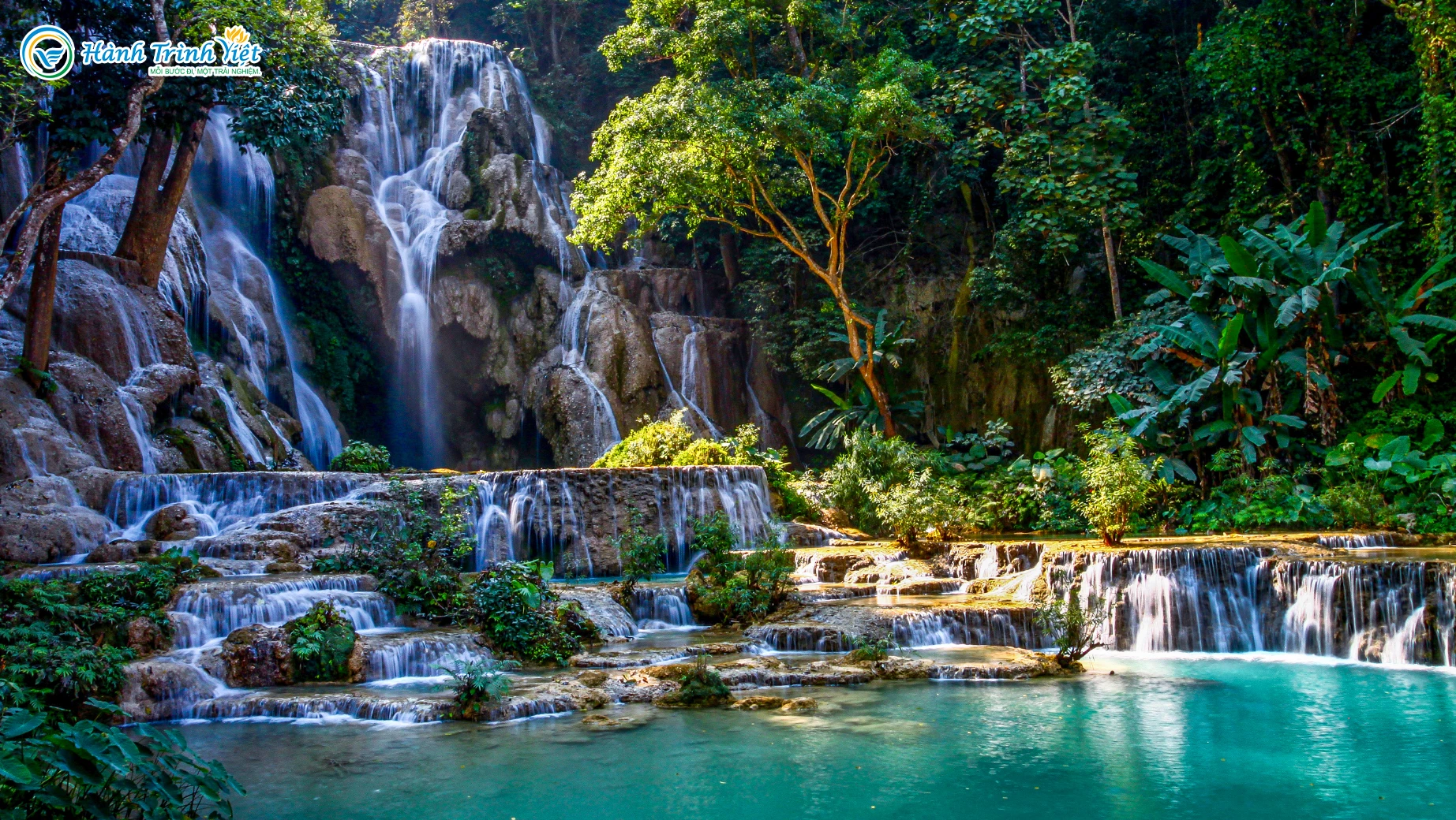 - Khu du lịch thác Kuang si – Thác nước đẹp bậc nhất của xứ Thượng Lào, cao 120m với làn nước xanh ngọc bích. Quý khách tự do check-in quang cảnh rừng núi Thượng Lào và vui chơi tắm suối.