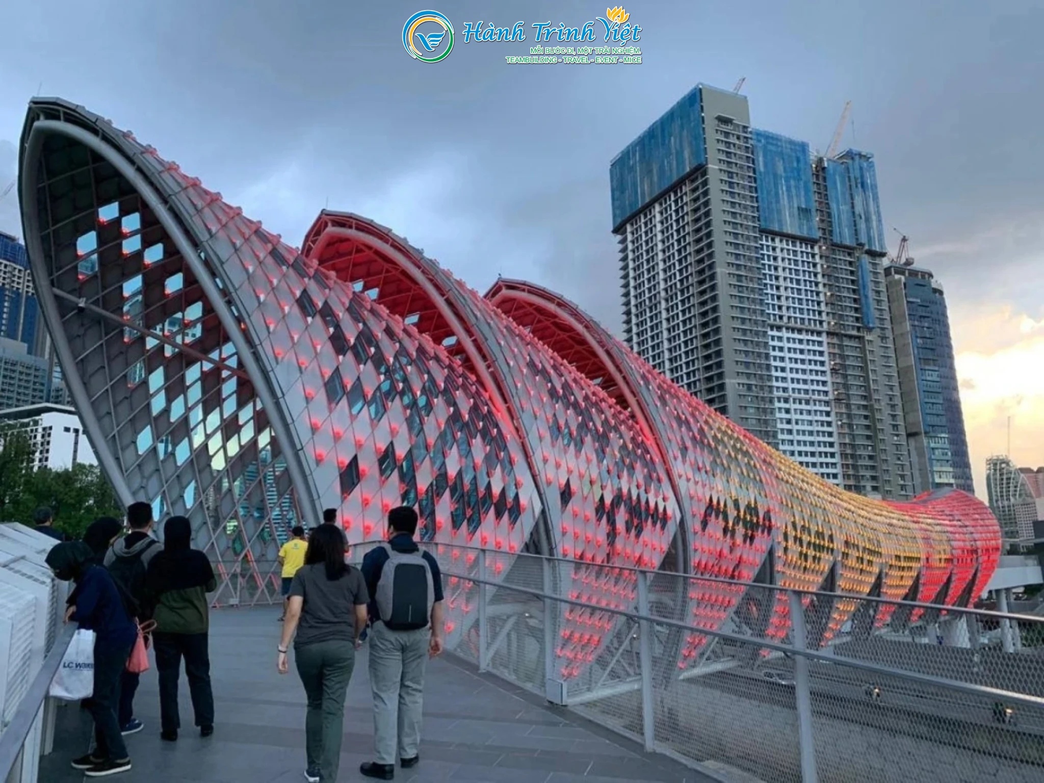 - Check in ở Cầu Saloma: Cầu Saloma không chỉ là một công trình kiến trúc độc đáo mà còn là điểm check-in lý tưởng ở Kuala Lumpur – Malaysia, nổi bật với thiết kế lấy cảm hứng từ sireh junjung, biểu tượng của lễ cưới người Malaysia. Từ cầu Saloma quý khách có thể ngắm nhìn toàn cảnh thành phố và chụp hình với background là tháp đôi Petronas.