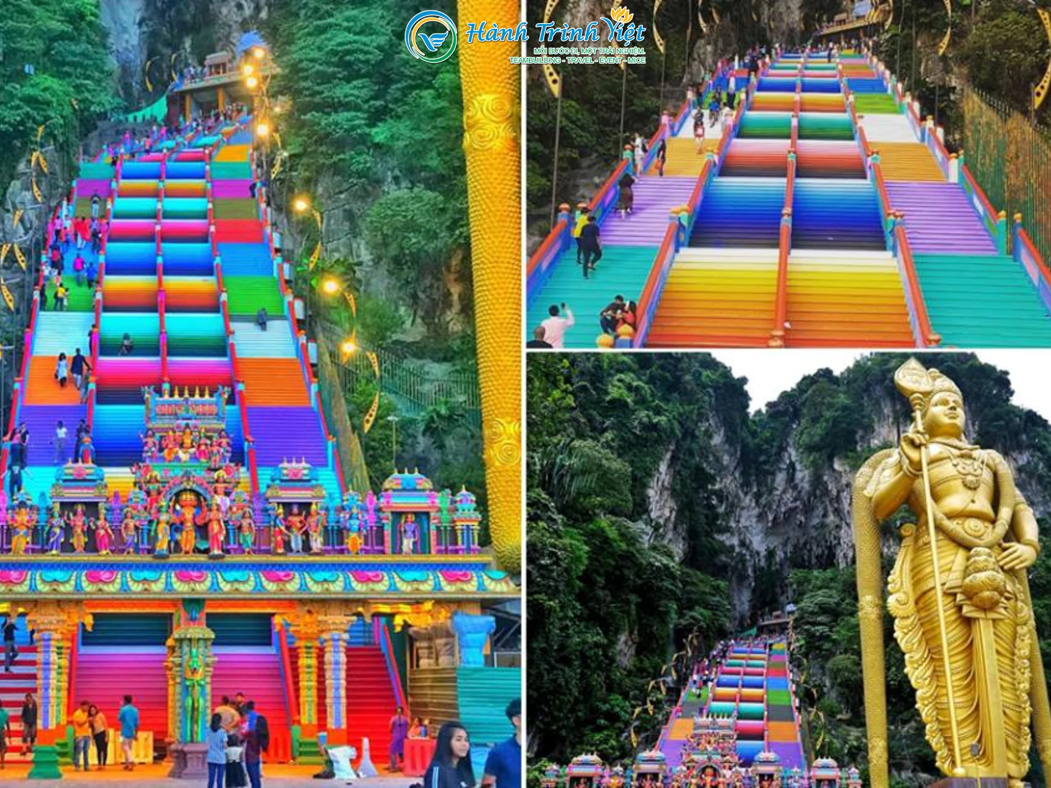 - Động Batu (Batu Cave) – Thánh địa của cộng đồng người Malaysia gốc Ấn, chiêm ngưỡng bức tượng Hindu cao nhất châu Á và chinh phục 272 bậc thang để vào tham quan các đền thờ với nhiều bức tượng độc đáo.