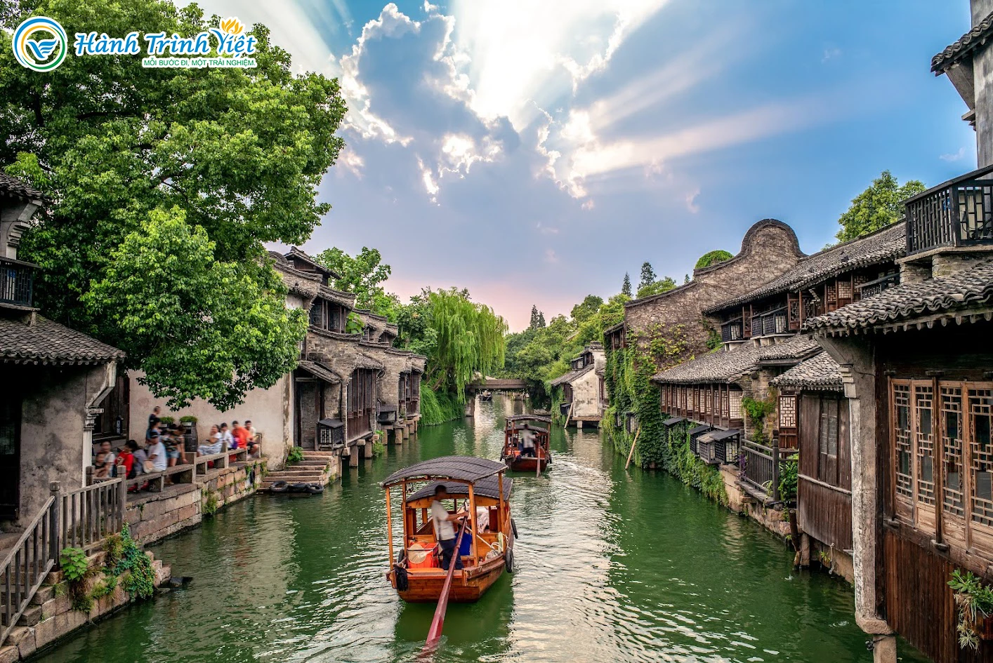 - Phố cổ Tây Sách Ô Trấn “Venice phương Đông” – nổi tiếng với hệ thống kênh rạch chằng chịt, gần 100 cây cầu đá cổ và những ngôi nhà cổ nằm sát hai bên bờ sông. Di sản văn hóa được UNESCO công nhận – nơi lưu giữ lối sống, kiến trúc và tinh thần truyền thống của Trung Hoa xưa, đặc biệt Không gian về đêm lung linh, cổ tích – đèn lồng đỏ thắp sáng khắp phố cổ, du khách có thể dạo thuyền, thưởng thức ẩm thực đường phố và tận hưởng vẻ đẹp thơ mộng, tĩnh lặng. (dạo thuyền tự túc chi phí – giá tham khảo hiện tại 220rmb/thuyền/6 người – tùy thời điểm tại khu du lịch sẽ có giá thay đổi)